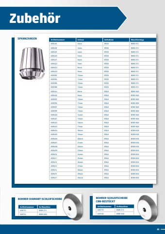 21BOHRER-DIAMANT-SCHLEIFSCHEIBE BOHRER-SCHLEIFSCHEIBE CBN-BEST%u00dcCKTArtikelnummer Zu Maschine659113 BSM-213659114 BSM-830Artikelnummer Zu Maschine659119 BSM-213659120 BSM-830Zubeh%u00f6rSPANNZANGEN Artikelnummer Gr%u00f6sse Aufnahme Maschinentyp659416 2mm ER20 BSM-213659418 3mm ER20 BSM-213659419 4mm ER20 BSM-213659420 5mm ER20 BSM-213659421 6mm ER20 BSM-213659422 7mm ER20 BSM-213659423 8mm ER20 BSM-213659425 9mm ER20 BSM-213659392 10mm ER20 BSM-213659394 11mm ER20 BSM-213659396 12mm ER20 BSM-213659398 13mm ER20 BSM-213659424 8mm ER40 BSM-830659426 9mm ER40 BSM-830659393 10mm ER40 BSM-830659395 11mm ER40 BSM-830659397 12mm ER40 BSM-830659399 13mm ER40 BSM-830659400 14mm ER40 BSM-830659401 15mm ER40 BSM-830659402 16mm ER40 BSM-830659403 17mm ER40 BSM-830659404 18mm ER40 BSM-830659405 19mm ER40 BSM-830659406 20mm ER40 BSM-830659407 21mm ER40 BSM-830659408 22mm ER40 BSM-830659409 23mm ER40 BSM-830659410 24mm ER40 BSM-830659411 25mm ER40 BSM-830659412 26mm ER40 BSM-830659413 27mm ER40 BSM-830659414 28mm ER40 BSM-830659415 29mm ER40 BSM-830659417 30mm ER40 BSM-830