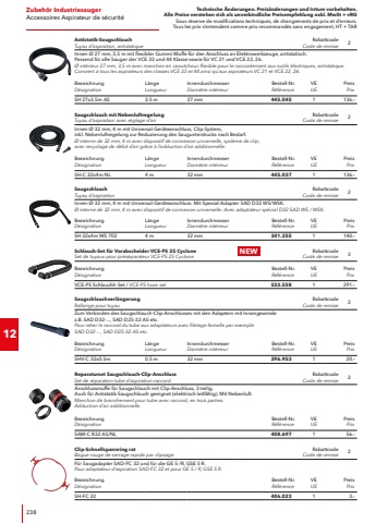 Technische %u00c4nderungen. Preis%u00e4nderungen und Irrtum vorbehalten.Alle Preise verstehen sich als unverbindliche Preisempfehlung exkl. MwSt + vRGSous r%u00e9serve de modifications techniques, de changements de prix et d%u2019erreurs. Tous les prix s%u2018entendent comme prix recommand%u00e9s sans engagement, HT + TAR61Zubeh%u00f6r Schweizer SpezialistenAccessoires Sp%u00e9cialistes suissesGewindereduktionR%u00e9duction du filetageRabattcodeCode de remise2BezeichnungD%u00e9signationBestell-Nr.R%u00e9f%u00e9renceVEUEPreis PrixGewindereduktion / R%u00e9duction de filetage M20 / M1451.191118.%u2013SchraubensetKit de visRabattcodeCode de remise2BezeichnungD%u00e9signationBestell-Nr.R%u00e9f%u00e9renceVEUEPreis PrixSchraubenset / Kit de vis51.21511.60Zubeh%u00f6r / Accessoires SM 21-6Ersatzmesser SM 21-6Lame de rechange SM 21-6RabattcodeCode de remise2BezeichnungD%u00e9signationL%u00e4ngeLongueurBestell-Nr.R%u00e9f%u00e9renceVEUEPreis PrixErsatzmesser / Lame de rechange 210 x 60 x 1.5 mm210 mm013.346138.%u2013Fahrgestell zu TeppichstripperChario pour d%u00e9colleuse de tapisRabattcodeCode de remise2BezeichnungD%u00e9signationBestell-Nr.R%u00e9f%u00e9renceVEUEPreis PrixFahrgestell / Chariot51.6151232.%u2013Zubeh%u00f6r / Accessoires SM 2106Ersatzmesser SM 2106Lame de rechange SM 2106RabattcodeCode de remise2BezeichnungD%u00e9signationL%u00e4ngeLongueurBestell-Nr.R%u00e9f%u00e9renceVEUEPreis PrixErsatzmesser / Lame de rechange 210 x 60 x 1.4 mm210 mm51.616129.%u2013Zubeh%u00f6r / Accessoires R 2602R%u00fchrpropeller INOX %u00d8 150 mmH%u00e9lice m%u00e9langeuse INOXRabattcodeCode de remise10INOX R%u00fchrpropeller f%u00fcr h%u00f6chste Anspr%u00fcche zum Vermischen von z%u00e4hem und dickfl%u00fcssigem R%u00fchrgut. Zur Verwendung mit dem R%u00fchrwerk R 2602.H%u00e9lice d%u2018agitation INOX pour les exigences les plus %u00e9lev%u00e9es pour le m%u00e9lange de produits visqueux et %u00e9pais. A utiliser avec l%u2018agitateur R 2602.BezeichnungD%u00e9signationDurchmesserDiam%u00e8treBestell-Nr.R%u00e9f%u00e9renceVEUEPreis PrixR%u00fchrpropeller / H%u00e9lice m%u00e9langeuse INOX150 mm51.213143.%u2013R%u00fchrstab inkl. SchraubensetB%u00e2ton m%u00e9langeur avec kit de visRabattcodeCode de remise2BezeichnungD%u00e9signationL%u00e4ngeLongueurBestell-Nr.R%u00e9f%u00e9renceVEUEPreis PrixR%u00fchrstab / B%u00e2ton m%u00e9langeur600 mm51.217132.%u2013