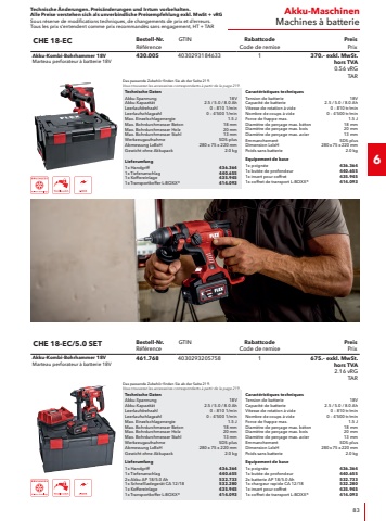 Technische %u00c4nderungen. Preis%u00e4nderungen und Irrtum vorbehalten.Alle Preise verstehen sich als unverbindliche Preisempfehlung exkl. MwSt + vRGSous r%u00e9serve de modifications techniques, de changements de prix et d%u2019erreurs. Tous les prix s%u2018entendent comme prix recommand%u00e9s sans engagement, HT + TAR354Zubeh%u00f6r Metalloberfl%u00e4chen-BearbeitungAccessoires Traitement de surface m%u00e9talliqueFixTec-Schnellspannmutter M14Ecrou de serrage rapide FixTrec M14RabattcodeCode de remise2F%u00fcr werkzeuglosen Scheibenwechsel, geeignet f%u00fcr Scheibendurchmesser 115 %u2013 150 mm.Pour un changement de disque sans outil, adapt%u00e9 aux disques de 115 %u00e0 150 mm de diam%u00e8tre.BezeichnungD%u00e9signationBestell-Nr.R%u00e9f%u00e9renceVEUEPreis PrixFIXTEC-M14313.459155.%u2013Litzendrahtb%u00fcrste StahlBrosse acier %u00e0 fils torsad%u00e9sRabattcodeCode de remise2Zum Bearbeiten, Strukturieren von Holzoberfl%u00e4chen und Ausb%u00fcrsten von Jahresringen in Weichh%u00f6lzern. Entfernt Farbr%u00fcckst%u00e4nde auf Holzoberfl%u00e4chen. Mit 4-Nut Walzenkern, passend f%u00fcr alle Ger%u00e4te mit 19 mm Keilnutspindel (kompatibel f%u00fcr LP 1503 VR).Pour traiter et structurer les surfaces en bois et pour enlever les veines du bois tendres %u00e0 la brosse. %u00c9limine les r%u00e9sidus de peinture sur les surfaces en bois. Avec noyau de rouleau %u00e0 4 rainures, convient pour tous les appareils avec broche cannel%u00e9e de 19 mm (compatible pour LP 1503 VR).BezeichnungD%u00e9signationDurchmesserDiam%u00e8treBestell-Nr.R%u00e9f%u00e9renceVEUEPreis PrixBW-S D100/85100 mm465.1781102.%u2013Litzendrahtb%u00fcrste EdelstahlBrosse inox %u00e0 fils torsad%u00e9sRabattcodeCode de remise2Zum Bearbeiten von Holzoberfl%u00e4chen mit Gerbstoffen wie Eichenh%u00f6lzer und zum Strukturieren, Ausb%u00fcrsten von Jahresringen in Weichh%u00f6lzern. Entfernt Farbr%u00fcckst%u00e4nde auf Holzoberfl%u00e4chen. Ideal auch zum B%u00fcrsten von metallischen Oberfl%u00e4chen. Mit 4-Nut Walzenkern, passend f%u00fcr alle Ger%u00e4te mit 19 mm Keilnutspindel (kompatibel f%u00fcr LP 1503 VR).Pour traiter les surfaces en bois avec des tanins comme les bois de ch%u00eane ainsi que pour structurer et enlever les cernes des bois tendres %u00e0 la brosse. %u00c9limine les r%u00e9sidus de peinture sur les surfaces en bois. Convient aussi parfaitement pour le brossage des surfaces m%u00e9talliques. Avec noyau de rouleau %u00e0 4 rainures, convient pour tous les appareils avec broche cannel%u00e9e de 19 mm (compatible pour LP 1503 VR).BezeichnungD%u00e9signationDurchmesserDiam%u00e8treBestell-Nr.R%u00e9f%u00e9renceVEUEPreis PrixBW-INOX D100/85100 mm465.1511151.%u2013Poli-FilzFeutre %u00e0 polirRabattcodeCode de remise2Weiches, elastisches Filz-Polierrad. Zum Hochglanzpolieren unter Verwendung von Polierpasten und -cremes.Roue %u00e0 polir en feutre souple. Pour un polissage sp%u00e9culaire en utilisant p%u00e2tes et cr%u00e8mes de polissage.BezeichnungD%u00e9signationDurchmesserDiam%u00e8treBestell-Nr.R%u00e9f%u00e9renceVEUEPreis PrixSW-PF 100x50100 mm257.3741108.%u2013BaumwollschwabbelDisque toile en cotonRabattcodeCode de remise2Polierring aus impr%u00e4gniertem Baumwolltuch. Poliert Alu, Kupfer, Messing und VA-St%u00e4hle auf Hochglanz. Ben%u00f6tigt werden 8 St%u00fcck und der Distanzringsatz (Bestell-Nr. 250.522).Tambour %u00e0 polir en coton impr%u00e9gn%u00e9. Polit aluminium, cuivre, laiton et inoxydable avec %u00e9clat. Huit pi%u00e8ces sont n%u00e9cessaires.BezeichnungD%u00e9signationBestell-Nr.R%u00e9f%u00e9renceVEUEPreis PrixBaumwollschwabbel-Scheibe 8er / Disque toile en coton 8er317.950856.%u2013Klebeband f%u00fcr SchleifbandBandes adh%u00e9sives pour bandes abrasivesRabattcodeCode de remise2Zum Schliessen von offenen Schleifb%u00e4ndern. Ben%u00f6tigt wird die Antriebsrolle RA 62x70 INOX 303.054.Pour la fermeture de bandes abrasives ouvertes. Galet d%u2019entra%u00eenement RA 62x70 INOX 303.054 requis.BezeichnungD%u00e9signationBestell-Nr.R%u00e9f%u00e9renceVEUEPreis PrixKlebeband f%u00fcr Schleifband / Bandes adh%u00e9sives pour bandes abrasives251.838119.%u2013