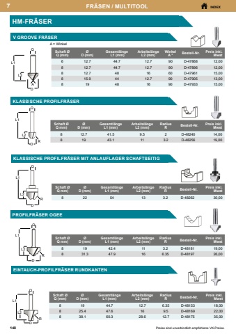 3 52BOHRENINDEXPreise sind unverbindlich empfohlene VK-Preise.BOHRER UND BIT SETSInhaltGr%u00f6sseMengeBestell-Nr.Preis inkl. MwstSteinbohrerHolzbohrerMetallbohrerBits 25 mmVersenkerMagnetischer Bithalter4, 5, 6, 7, 8 mm4, 5, 6, 7, 8 mm3, 4 ,5 ,6 mm1x PH1, 2x PH2,1x PH31x PZ1,2x PZ2,1x PZ31x T20, 1x T25, 1x T301x SL3, 1x SL4, 1x SL530 StkD-4720435,00SteinbohrerHolzbohrerMetallbohrerBits 25 mmSteckschl%u00fcsselVersenkerBithalter 50 mm4, 5, 6, 7, 8 mm4, 5, 6, 7, 8 mm2 - 5 mm; in 0.5 mm Schritten (je 1 Stk)1x PH1, 1x PH2, 1x PH3, 1x PH41x PZ1, 1x PZ2, 1x PZ3, 1x PZ41x T20, 1x T25, 1x T301x S1.0, 1x S1.2, 1x S1.67, 8, 10 mm34 StkD-3698045,00MetallbohrerBits 25 mmSteckschl%u00fcssel Magnetischer Bithalter1.5, 2, 2.5, 3, 3.5, 4, 4.5, 5, 6 mm2x PH1, 2x PH2, 1x PH32x PZ1, 2x PZ2, 1x PZ31x T10, 2x T15, 2x T20, 2x T252x T30, 1x T401x SL4.5, 2x SL5.5, 2x SL6.51x H2, 1x H2.5, 1x H3, 2x H42x H5, 2x H64, 5, 6, 8, 10 mm48 StkB-3619249,00Bohrer HSS-TiNSteinbohrerHolzbohrerFlachfr%u00e4sbohrerBits 50 mmBits 25 mmSteckschl%u00fcsselSchraubendreher BithalterBithalter 50 mmSchnellwechsel BithalterVersenkerK%u00f6rnerCuttermesser3 m Massband1.5 - 7 mm; in 0.5 mm Schritten (je 1 Stk)3, 4, 5, 6, 8 mm4, 5, 6, 8, 10 mm8, 15, 20 mm10x1x S1, 2x S1.2, 1x S1.62x PZ1, 2x PZ2, 2x PZ32x PH1, 2x PH2, 2x PH31x T20, 1x T25, 1x T30, 1x T40Innensechskant 3, 4, 5, 68, 10, 12, 1371 StkD-33691107,00 Maccess logo : Silver GradationMaccess logo : BasicMaccess logo : Silver GradationMaccess logo : Basic