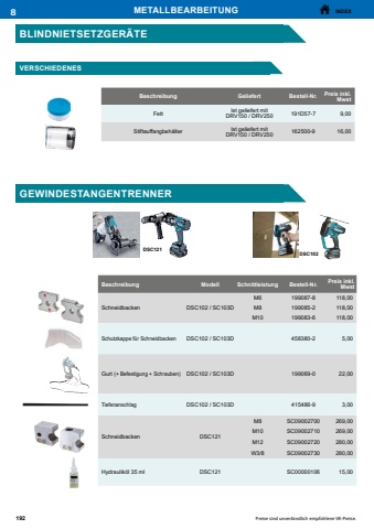 228INDEXPreise sind unverbindlich empfohlene VK-Preise.SCHRAUBENBITSET IMPACT PREMIERBITSETSPH2PZ2, PZ3T25, T50Mit Einh%u00e4ngehakenPH1, PH2, PH3PZ1, PZ2, PZ3T25, T50Mit Bithalter 50 mm5-TEILIGES BITSET IMPACT PREMIER 50 MM IMPACT PREMIERInhaltBestell-Nr.Preis inkl. MwstE-1356830,0011-TEILIGE BITSET IMPACT PREMIER 25 MM IMPACT PREMIERInhaltBestell-Nr.Preis inkl. MwstE-0356735,00PH2PZ1, PZ2, PZ3T20, T25, T30SL4, SL6Mit Bithalter 50 mmE-0357335,0031-TEILIGES BITSET IMPACT PREMIER 25 MM IMPACT PREMIERInhaltBestell-Nr.Preis inkl. MwstE-1355253,00PH1, 5x PH2, 2x PH3PZ1, 5x PZ2, 2x PZ3T10, T15, 3x T20, 2x T25, 2x T30SL4, SL6H4, H5, H6 HexagonalMit Torsion Bithalter 50 mm