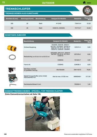 3 58BOHRENINDEXPreise sind unverbindlich empfohlene VK-Preise.HARTMETALL LOCHS%u00c4GEN EZYCHANGE F%u00dcR STEINEZYCHANGE ADAPTER UND VERL%u00c4NGERUNGENDurchmesser (mm)Bestell-Nr.Preis inkl. Mwst20E-0664432,0022E-0665036,0025E-0666636,0032E-0667238,0035E-0668838,0038E-0669440,0040E-0670340,0044E-0671942,0051E-0672551,0054E-0673153,0060E-0674755,0064E-0675355,0067E-0676957,0068E-0677557,00BeschreibungBestell-Nr.Preis inkl. MwstAufnahme Ezychange 70 mm %u00d8 8,7 mm(Passt nicht auf Zentrierbohrer alte Serie Art. B-11542) inklusiv Zentrierbohrer Bi-M 85 mm HSS-G (Art. E-04086) inklusiv Zentrierbohrer HM 105 mm (Art. E-06862)E-04070 E-0695940,0049.00Aufnahme Ezychange 150 mm %u00d8 11,0 mm (ohne Zentrierbohrer)E-0687855,00Aufnahme Ezychange 300 mm %u00d8 11,0 mm (ohne Zentrierbohrer)E-0688456,00ZENTRIERBOHRER EZYCHANGEBeschreibungLongueurcmBestell-Nr.Preis inkl. MwstHSS-G f%u00fcr Metall, Holz und Kunststoff85E-0408613,00HSS-Co f%u00fcr Metall und Edelstahl85E-0409216,00HSS-G f%u00fcr Metall, Holz und Kunststoff105E-0684015,00HSS-Co f%u00fcr Metall und Edelstahl105E-0685619,00HM f%u00fcr Mauerwerk, Stein und Fiberglas105E-0686222,00F%u00fcr Lochs%u00e4gen Ezychange HMF%u00fcr Lochs%u00e4gen Ezychange BiMLOCHS%u00c4GEN EZYCHANGEWerkzeuglos und schnell !Tiefe max. 60 mmHM