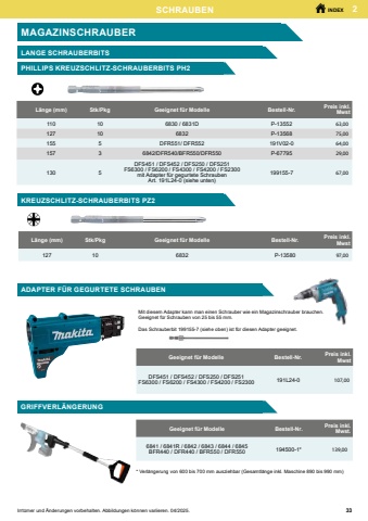 1 17AKKUS / LADEGER%u00c4TEINDEXIrrt%u00fcmer und %u00c4nderungen vorbehalten. Abbildungen k%u00f6nnen variieren. 04/2025.BeschreibungModellBestell-Nr.Preis inkl. MwstLadeger%u00e4t f%u00fcr Handstaubsauger DC1002CL114FD191L80-029,00Ladeger%u00e4t USB ADP07 3.6V 1.5 AhDF001DW630A38-312,00USB-Kabel f%u00fcr Ladeger%u00e4t 630A38-3630A38-3661750-83,50Netzadapter 230 V f%u00fcr RadioBMR100/102SE0000007835,00DMR106 / DMR108 / DMR112SE0000010135,00BMR105 / DMR105 / DMR110SE0000026535,00DMR115 / MR004G / MR007GSE0000067945,00DMR301TC00000137 85,00Netzadapter 230 V f%u00fcr LautsprecherDMR200/DMR202SE0000050119.00MR014GSE0000124932,00Netzadapter 230 V f%u00fcr VentilatoreDCF300TE0000017452,00DCF203 / CF001GTE0000017339,00CF100D / DCF102D / CF101DTE0000021125,00CF002G / DCF301TE0000044249,00CF003GTE0000077910,00Netzadapter 230 V f%u00fcr K%u00fchl- und W%u00e4rmeboxDCW180 / CW001G / CW003GWL00000060129,00CW002GWL00000228129,00CW004GCE00000130132,00Adapter f%u00fcr Zigarettenanz%u00fcnder 12V-24V f%u00fcr K%u00fchl- und W%u00e4rmeboxDCW180CW001G / CW003GWL0000000215,00CW002GWL0000022515,00NETZADAPTER 230VADAPTERBeschreibungGeeignet f%u00fcr ModelleBestell-Nr.Preis inkl. MwstPlastik-DeckelAkku-Kontaktschutz wenn Akku nicht gebraucht wirdBL3626451153-21,65LXT-Modelle 14.4-18V450128-81,65XGT-Modelle 40Vmax412393-72,20Akku-SchutzSpeziell entwickelt zum Schutz der Li-Ion Akkus - gegen Staub und Tropfwas-ser, und Outdoor Einsatz, sowie in rauer Umgebung18V Li-Ionen Akkus195798-365,00AKKU-SCHUTZVERSCHIEDENES