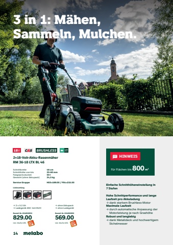 Das AkkuGartenprogramm.Die Akku-Gartenger%u00e4te von Metabo sind die perfekten Helfer f%u00fcr die Gartenarbeit.DAS GESAMTE GARTENPROGRAMM UNTER METABO.CH2
