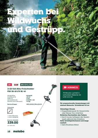 Das AkkuGartenprogramm.Die Akku-Gartenger%u00e4te von Metabo sind die perfekten Helfer f%u00fcr die Gartenarbeit.DAS GESAMTE GARTENPROGRAMM UNTER METABO.CH2