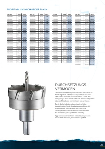 ART. NR.%u00d8MMPREIS090810161622.30090810171722.30090810191922.30090810202022.30090810212122.30090810222222.30090810242422.30090810252522.30090810272723.40090810282823.40090810292923.40090810303023.40090810323223.40090810333326.40090810353526.40090810373726.40090810383826.40090810404028.50090810414132.50090810434332.50090810444432.50090810454532.50ART. NR.%u00d8MMPREIS090810464632.50090810484832.50090810505033.50090810515133.50090810525233.50090810545438.60090810555538.60090810565638.60090810575738.60090810585838.60090810595938.60090810606038.60090810626242.60090810636342.60090810646442.60090810656542.60090810666642.60090810676742.60090810686842.60090810707042.60090810717142.60ART. NR.%u00d8MMPREIS090810737342.60090810747447.70090810757547.70090810767647.70090810777747.70090810787847.70090810797947.70090810808047.70090810828247.70090810838348.80090810848452.60090810868655.80090810898955.80090810929255.80090810959559.90090810989864.000908110210265.900908110510569.000908110810887.300908111111196.3009081114114110.60Multi Purpose Lochs%u00e4gen-Satz 7-tlg.Art. Nr. 09085883HDCT>58 / 65 / 68 / 78 / 83mmMulti Purpose Lochs%u00e4gen-Satz 13-tlg.Art. Nr. 09081783HDCT>17 / 21 / 25 / 33 / 41 / 51 / 65 / 76 / 83mmMulti Purpose Lochs%u00e4gen-Satz 6-tlg. Art. Nr. 09086083HDCT>60 / 65 / 80 / 83mmART. NR.%u00d8MMPREIS09081121121112.6009081125125127.8009081127127134.9009081133133152.1009081138138156.2009081140140160.3009081146146167.3009081152152170.4009081158158181.8009081160160195.8009081165165195.8009081168168218.0009081177177230.2009081185185280.9009081200200365.0009081210210365.0009081225225385.3009081250250425.8009081270270456.3009081315315556.7009081330330556.70MULTI PURPOSE LOCHS%u00c4GEN - SCHNITTTIEFE 55MMMulti Purpose Lochs%u00e4gen-Satz 8-tlg.Art. Nr. 090859127HDCT>59 / 65 / 77 / 92 / 114 / 127mm294.30250.10399.80199.907
