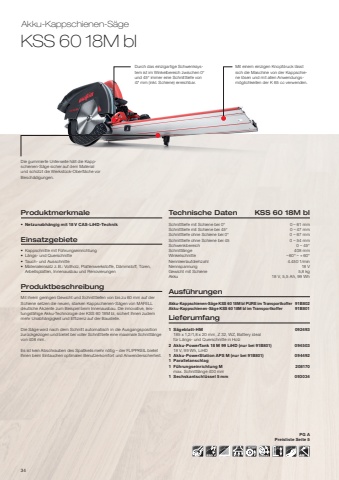 18Der FLIPPKEI von MAFELL. Auch ohne Abschrauben des Spaltkeils ist ein sicherer Eintauchschnitt machbar %u2013 dank dem FLIPPKEI von MAFELL.... und so funktioniert%u2019s:%u2022 Das S%u00e4geblatt wird mittels der leichtg%u00e4ngigen stabilen H%u00f6henf%u00fchrung auf eine Position 2 mm %u00fcber der Unterkante Maschinengrundplatte gebracht. %u2022 Das Werkst%u00fcck wird in dieser Stellung nicht mehr vom S%u00e4geblatt ber%u00fchrt. %u2022 Diese Stellung ist gegen unbeabsichtigtes Eintauchen durch einen oberen Totpunkt (KSP-Serie, KSS 400) bzw. einen automatischen Arretierschalter gesichert.%u2022 Ohne Vorw%u00e4rtsbewegung der Maschine kann jetzt das S%u00e4geblatt direkt in den Werkstoff eingetaucht werden.%u2022 Der gefederte FLIPPKEI bleibt automatisch in der Schutzhaube zur%u00fcck und liegt dabei auf dem Werkst%u00fcck auf.%u2022 Optimale Kontrolle des Tauchvorganges durch:%u2022 Volle Sicht auf das S%u00e4geblatt am Anriss (KSP Serie)%u2022 Hervorragende Bedienbarkeit%u2022 Sobald eine Vorw%u00e4rtsbewegung der Maschine erfolgt, schnappt der FLIPPKEI selbstt%u00e4tig in den S%u00e4geschnitt.%u2022 Die gr%u00f6%u00dftm%u00f6gliche Anwendersicherheit beim S%u00e4gen ist dadurch garantiert.%u2022 Das bisher notwendige Aus- und Einbauen des Spaltkeils, um Tauchschnitte %u00fcberhaupt ausf%u00fchren zu k%u00f6nnen, entf%u00e4llt!%u2022 Der Spaltkeil bleibt immer an der Maschine!Typen mit dem neuen FLIPPKEI%u2022 KSS 300%u2022 KSS 40 18M bl%u2022 KSS 50 cc %u2022 KSS 50 18M bl%u2022 KSS 60 cc%u2022 KSS 60 18M bl%u2022 KSS 80 Ec / 370%u2022 PSS 3100 SE %u2022 KSP 40 Flexistem %u2022 K 55 cc%u2022 K 55 18M bl%u2022 K 65 cc%u2022 K 65 18M bl%u2022 K 85 Ec%u2022 K 85-18