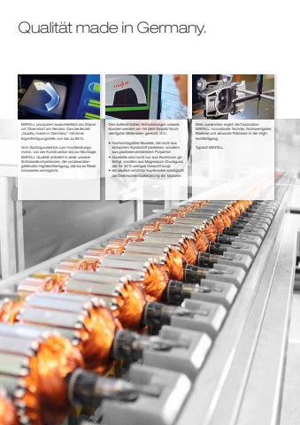 6Qualit%u00e4t made in Germany.MAFELL produziert ausschlie%u00dflich am Standort Oberndorf am Neckar. Das bedeutet %u201eQuality made in Germany%u201c mit einer Eigenfertigungstiefe von bis zu 85%. Vom Spritzgussteil bis zum Hochleistungsmotor, von der Konstruktion bis zur Montage: MAFELL Qualit%u00e4t entsteht in einer unserer Schl%u00fcsselkompetenzen, der prozess%u00fcbergeifenden Hightechfertigung, die kurze Reaktionszeiten erm%u00f6glicht. Den %u00e4u%u00dferst hohen Anforderungen unserer Kunden werden wir mit dem Einsatz hochwertigster Materialien gerecht, d.h.: %u2022hochschlagz%u00e4he Bauteile, die nicht aus einfachem Kunststoff bestehen, sondern aus glasfaserverst%u00e4rktem Polyamid %u2022Gussteile sind nicht nur aus Aluminium gefertigt, sondern aus Magnesium-Druckguss,der f%u00fcr 30% weniger Gewicht sorgt %u2022ein deutlich erh%u00f6hter Kupferanteil erm%u00f6glichtdie Drehmomentoptimierung der MotorenAlles zusammen ergibt die Faszination MAFELL: innovativste Technik, hochwertigstesMaterial und absolute Pr%u00e4zision in der Hightechfertigung. Typisch MAFELL.