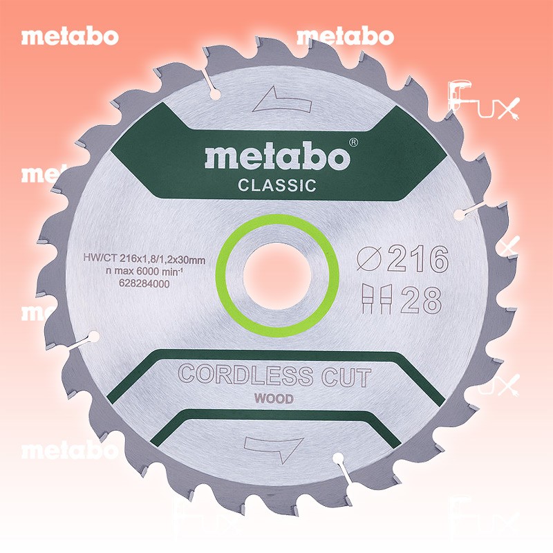 Zu "Kreissägeblätter »cordless cut« wood " von Metabo Metabo Kreissägeblatt 216 mm classic Bestell- und Artikelnummer: 628284000 Maximale Laufzeit für Akku-Sägen durch extra dünne Stammblattdicke und Schnittbreite Deutlich mehr Schnitte pro Akkuladung im Vergleich zu Standard-Sägeblättern bei gleich hoher Standzeit Zum Kreissägeblatt-Finder Technische Daten Durchmesser x Schnittbreite x Bohrung 216 x 1.8 x 30 mm Material HW/CT Zähnezahl 28 Zahnform WZ Stammblattdicke 1.2 mm Spanwinkel 5° geeignet für KS 18 LTX 216 / KGS 18 LTX 216 Verpackung Karton Standard-Ausrüstung Verkaufseinheit 1 Stk. Geliefert im Karton Listenpreis CHF 44.00 Fuxpreis CHF 37.00 inkl. 8.1% MwSt, inkl vRG Versand CHF 15.00 Kein Grauimport! Produkt bestellen Verkaufseinheit 1 Stk. 1 Stück 2 Stück 3 Stück 4 Stück 5 Stück 6 Stück 7 Stück 8 Stück 9 Stück 10 Stück 11 Stück 12 Stück 13 Stück 14 Stück 15 Stück 16 Stück 17 Stück 18 Stück 19 Stück 20 Stück 21 Stück 22 Stück 23 Stück 24 Stück 25 Stück 26 Stück 27 Stück 28 Stück 29 Stück 30 Stück 31 Stück 32 Stück 33 Stück 34 Stück 35 Stück 36 Stück 37 Stück 38 Stück 39 Stück 40 Stück 41 Stück 42 Stück 43 Stück 44 Stück 45 Stück 46 Stück 47 Stück 48 Stück 49 Stück 50 Stück Alle Angaben ohne Gewähr und solange Vorrat reicht!Wiederverkäufer werden?Lehrlingsrabatt? Produkt als PDF AKTION 15%