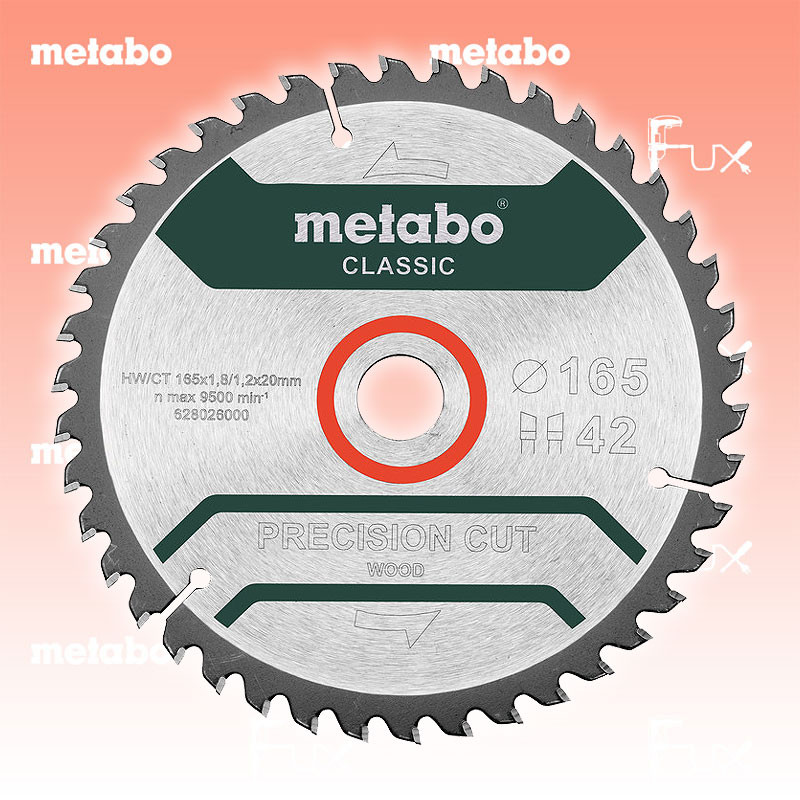 Zu "Kreissägeblätter »precision cut« wood" von Metabo Metabo Kreissägeblatt 165 mm classic Bestell- und Artikelnummer: 628027000 Sehr breites Einsatzspektrum in der Holzbearbeitung Für saubere Schnittergebnisse bei Längs- und Querschnitten in Weich- und Hartholz Geeignet für Voll- und Schichtholz, Spanplatten roh, beschichtet oder furniert, MDF, Verbundwerkstoffe Höhere Leistungskraft der Kreissäge notwendig Zum Kreissägeblatt-Finder Technische Daten Durchmesser x Schnittbreite x Bohrung 165 x 1.8 x 20 mm Material HW/CT Zähnezahl 42 Zahnform WZ Stammblattdicke 1.2 mm Spanwinkel 5° geeignet für KS 18 LTX 57 Verpackung Blister Standard-Ausrüstung Verkaufseinheit 1 Stk. Geliefert im Blister Listenpreis CHF 35.00 Fuxpreis CHF 30.00 inkl. 8.1% MwSt, inkl vRG Versand CHF 15.00 Kein Grauimport! Produkt bestellen Verkaufseinheit 1 Stk. 1 Stück 2 Stück 3 Stück 4 Stück 5 Stück 6 Stück 7 Stück 8 Stück 9 Stück 10 Stück 11 Stück 12 Stück 13 Stück 14 Stück 15 Stück 16 Stück 17 Stück 18 Stück 19 Stück 20 Stück 21 Stück 22 Stück 23 Stück 24 Stück 25 Stück 26 Stück 27 Stück 28 Stück 29 Stück 30 Stück 31 Stück 32 Stück 33 Stück 34 Stück 35 Stück 36 Stück 37 Stück 38 Stück 39 Stück 40 Stück 41 Stück 42 Stück 43 Stück 44 Stück 45 Stück 46 Stück 47 Stück 48 Stück 49 Stück 50 Stück Alle Angaben ohne Gewähr und solange Vorrat reicht!Wiederverkäufer werden?Lehrlingsrabatt? Produkt als PDF AKTION 15%