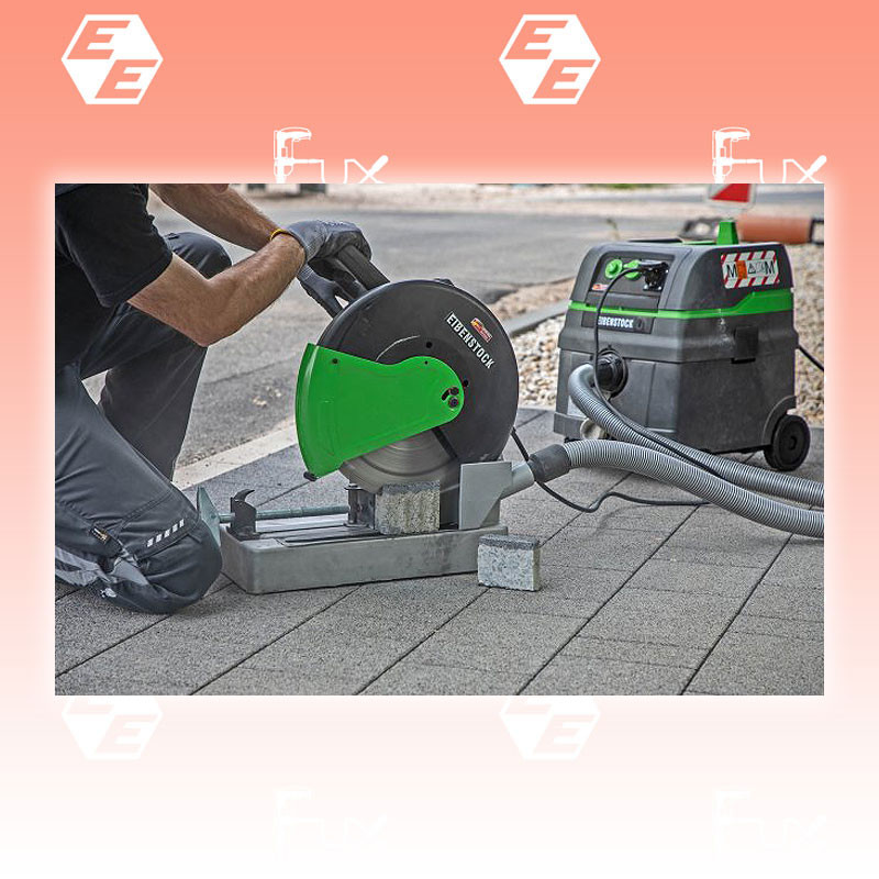 Zu "Universalsäge" von Eibenstock Eibenstock EST 350.2 Universalsäge Bestell- und Artikelnummer: 06637000 Anwendung: Trennen von Steinmaterialien, z. B. Beton, Naturstein, Ziegel Ideal für präzise Schnitte bei Pflasterarbeiten Trennen von Stahl, Kunststoff und ähnlichen Materialien mit der Universaltrennscheibe (Zubehör) Garten- und Landschaftsbau, Straßen- und Wegebau, für Klinkerarbeiten etc. Merkmale: Neuer ergonomischer Handgriff - komfortable Bedienung aus allen Arbeitspositionen Robuster Tisch aus Aluminiumguss - robust und langlebig Optimiertes Absaugsystem durch geschlossenen Boden im Maschinentisch Anlaufstrombegrenzung - Sanftanlauf der Maschine Handliches und flexibles Gerät Werkzeuglos verstellbare Schnellspannvorrichtung - sichere Werkstückbefestigung Spindelarretierung - einfacher Scheibenwechsel Transportsicherung im eingeklappten Zustand - handlicher und sicherer Transport der Maschine Winkelanschlag stufenlos verstellbar von 0-45° - einfache und genaue Gehrungsschnitte Absaugstutzen Ø 35 mm - Anschluss an die DSS-Industriestaubsauger Reihe Schnitttabelle (Trennkapazität bei 90° Schnitten) Schnitttiefe: 80 mm 100 mm 120 mm Schnittlänge: 250 mm 200 mm 150 mm Technische Daten Leistungsaufnahme 2.400 W Nennspannung 230 V Leerlaufdrehzahl 3.900 U/min Werkzeugaufnahme Ø 25,4 mm max. Scheibendurchmesser 350 mm max. Schnitttiefe 120 mm max. Schnittlänge 250 mm Gewicht 19 kg Standard-Ausrüstung im Karton inkl. Diamanttrennscheibe Ø 350 mm und Montagewerkzeug Zubehör Verbrauchsmaterial Listenpreis CHF 897.20 Fuxpreis CHF 718.00 inkl. 8.1% MwSt, inkl vRG Versand CHF 15.00 Kein Grauimport! Produkt bestellen 1 Stück 2 Stück 3 Stück 4 Stück 5 Stück 6 Stück 7 Stück 8 Stück 9 Stück 10 Stück Alle Angaben ohne Gewähr und solange Vorrat reicht!Lehrlingsrabatt? Produkt als PDF AKTION 20%