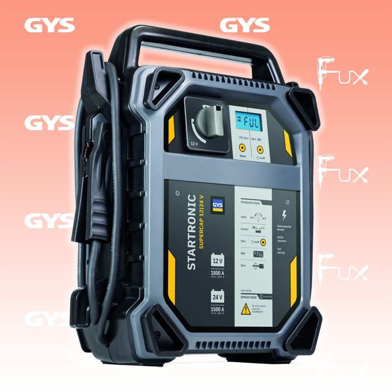 Der für 12- und 24-V-Fahrzeuge konzipierte STARTRONIC SUPERCAP 12/24 V ist ein intelligenter autonomer Starter ohne interne Batterie. Er ist so konzipiert, dass er seine Superkondensatoren entweder mithilfe der Restspannung des Pannenfahrzeugs oder schneller mithilfe der Batterie des Pannenhilfefahrzeugs auflädt.