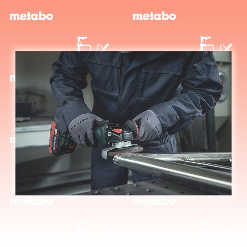 Zu "Akku Winkelschleifer" von Metabo FULL Service: 36 Monate zum Nulltarif für Sie! Weitere Infos zum FULL Service Dieses Produkt ist CAS kompatibel! Weitere Infos zu CAS Metabo WVB 18 LT BL 11-125 Quick Inox Akku-Winkelschleifer Bestell- und Artikelnummer: 613091850 Bürstenloser Akku-Winkelschleifer der neuen Generation: so stark wie ein 1100-Watt-Netzgerät dank 40% mehr Leistung Perfekte Edelstahlbearbeitung: durchzugsstarker Winkelschleifer mit hoher Getriebeuntersetzung und reduzierter, regelbarer Drehzahl für kühlen Schliff Servicefreier Brushless Motor mit höchster Effizienz bei maximaler Handlichkeit M-Quick-System für werkzeuglosen Scheibenwechsel auf Knopfdruck Akkupack drehbar in 90°-Grad-Schritten für beste Ergonomie in jeder Arbeitsposition Metabo S-automatic mechanische Sicherheitskupplung: minimiert Kick-Back beim Blockieren der Scheibe auf das am Markt niedrigste Niveau – für maximalen Anwenderschutz Elektronischer Überlastschutz, Sanftanlauf und Wiederanlaufschutz Abnehmbarer Staubschutzfilter als Motorschutz vor groben Partikeln OHNE AKKUS UND LADEGERÄT Technische Daten Akkuspannung 18 V Scheiben-Ø 125 mm Max. Schnitttiefe 27 mm Leerlaufdrehzahl 2.000 - 7.600 /min Spindelgewinde M 14 Gewicht ohne Akkupack 1,8 kg Gewicht mit Akkupack 2,5 kg Standard-Ausrüstung Schutzhaube Stützflansch M-Quick-Spannmutter Zusatzhandgriff Staubschutzfilter ohne Akkupack ohne Ladegerät Zubehör Verbrauchsmaterial Listenpreis CHF 392.00 Fuxpreis CHF 333.00 inkl. 8.1% MwSt, inkl vRG Frankolieferung Kein Grauimport! Produkt bestellen 1 Stück 2 Stück 3 Stück 4 Stück 5 Stück 6 Stück 7 Stück 8 Stück 9 Stück 10 Stück Alle Angaben ohne Gewähr und solange Vorrat reicht!Wiederverkäufer werden?Lehrlingsrabatt? Produkt als PDFVideo LiHD 1Video LiHD 2 AKTION 15%