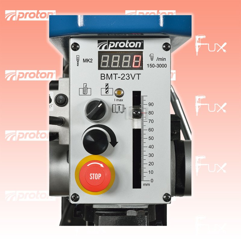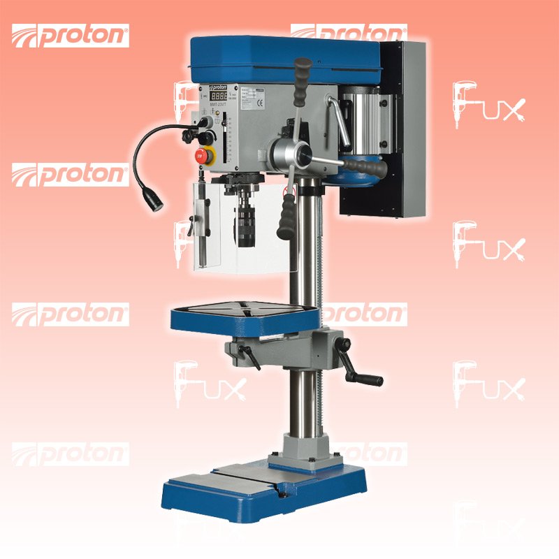 Zu "Tischbohrmaschinen" von Proton Proton BMT-23VT Tischbohrmaschine Bestell- und Artikelnummer: 120607 1-touriger Motor Drehzahlregulierung mittels Keilriemen mit Schnellspannbohrfutter 1 - 16 mm, Bohrfutterschutz und Not-Ausschalter Sicherheitssystem gegen automatischen Anlauf der Maschine Elektrisch gesicherter Riemendeckel Bohrtisch mit 4 T-Nuten, schwenkbar Tischhöhe über Zahnstange verstellbar LED-Arbeitsleuchte Technische Daten Motorspannung / -leistung 230 V / 0.75 kW Bohrleistung in Stahl 20 mm Bohrhub 90 mm Bohrspindel MK2 Anzahl Drehzahlen variabel mit 2 Stufen Flachriemen Drehzahlregulierung stufenlos Drehzahlbereich 150 - 1250 / 350 - 2500 min⁻¹ Drehzahlanzeige digital ✓ Tischbreite (I) 285 mm Tischtiefe (H) 325 mm Tiefe (B) 720 mm Breite (G) 350 mm Säule (E) 80 mm Spindelnase / Grundplatte (C) 640 mm Höhe (A) 1090 mm Gewindeschneidfunktion ✓ Kühlsystem integriert nein LED-Arbeitsleuchte ✓ Schnellspannbohrfutter ✓ T-Nutenbreite 12 mm Tischbelastung 30 kg Ausladung (D) 180 mm Deckel-Endschalter ✓ Notausschalter ✓ Bohrfutterschutz ✓ Gewicht 118 kg Standard-Ausrüstung Schnellspannbohrfutter 1 – 16 mm Zubehör Listenpreis CHF 3'290.00 Fuxpreis CHF 2'797.00 inkl. 8.1% MwSt Frankolieferung Kein Grauimport! Produkt bestellen 1 Stück 2 Stück 3 Stück 4 Stück 5 Stück 6 Stück 7 Stück 8 Stück 9 Stück 10 Stück Alle Angaben ohne Gewähr und solange Vorrat reicht!Lehrlingsrabatt? Produkt als PDF AKTION 15%
