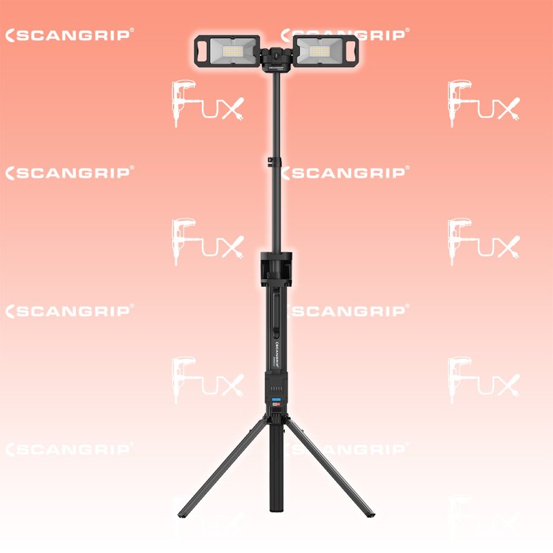 - Stativ mit zwei eingebauten Flutlichtstrahler, die bis zu 5000 Lumen bieten