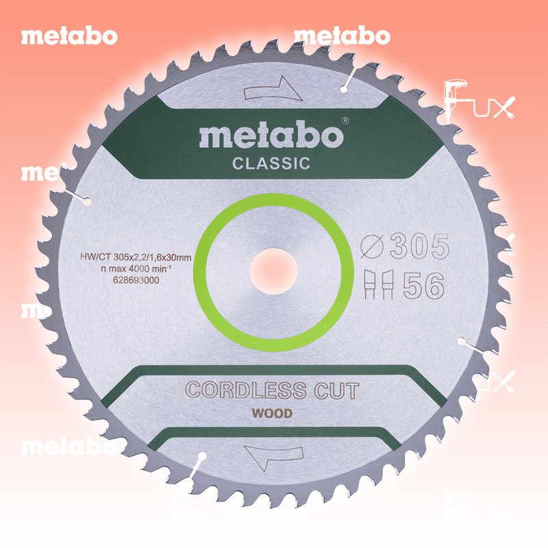 Zu "Kreissägeblätter »cordless cut« wood " von Metabo Metabo Kreissägeblatt 305 mm professional Bestell- und Artikelnummer: 628693000 Maximale Laufzeit für Akku-Sägen durch extra dünne Stammblattdicke und Schnittbreite Deutlich mehr Schnitte pro Akkuladung im Vergleich zu Standard-Sägeblättern bei gleich hoher Standzeit geeignet für KGS 18 LTX BL 305 Zum Kreissägeblatt-Finder Technische Daten Durchmesser x Schnittbreite x Bohrung 305 x 2.2 x 30 mm Material HW/CT Zähnezahl 56 Zahnform WZ Stammblattdicke 1.6 mm Spanwinkel 5° neg. Verpackung Karton Standard-Ausrüstung Verkaufseinheit 1 Stk. Geliefert im Karton Listenpreis CHF 56.00 Fuxpreis CHF 48.00 inkl. 8.1% MwSt, inkl vRG Versand CHF 15.00 Kein Grauimport! Produkt bestellen Verkaufseinheit 1 Stk. 1 Stück 2 Stück 3 Stück 4 Stück 5 Stück 6 Stück 7 Stück 8 Stück 9 Stück 10 Stück 11 Stück 12 Stück 13 Stück 14 Stück 15 Stück 16 Stück 17 Stück 18 Stück 19 Stück 20 Stück 21 Stück 22 Stück 23 Stück 24 Stück 25 Stück 26 Stück 27 Stück 28 Stück 29 Stück 30 Stück 31 Stück 32 Stück 33 Stück 34 Stück 35 Stück 36 Stück 37 Stück 38 Stück 39 Stück 40 Stück 41 Stück 42 Stück 43 Stück 44 Stück 45 Stück 46 Stück 47 Stück 48 Stück 49 Stück 50 Stück Alle Angaben ohne Gewähr und solange Vorrat reicht!Wiederverkäufer werden?Lehrlingsrabatt? Produkt als PDF AKTION 15%