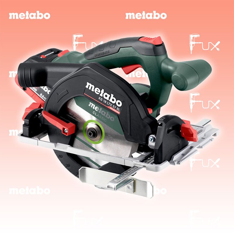 Zu "Akku Handkreissägen" von Metabo FULL Service: 36 Monate zum Nulltarif für Sie! Weitere Infos zum FULL Service Dieses Produkt ist CAS kompatibel! Weitere Infos zu CAS Metabo KS 18 LTX 57 BL Akku Handkreissäge Bestell- und Artikelnummer: 611857810 Durchzugsstarke, leichte Akku-Handkreissäge für den universellen Baustelleneinsatz Kraftvoller Brushless-Motor für schnellen Arbeitsfortschritt und höchste Effizienz Aluminium-Bodenplatte direkt einsetzbar auf Führungsschienen von Metabo sowie Mafell, Bosch, Festool, Makita, HiKOKI, Hilti und anderen Herstellern Schnelle, exakte Kappschnitte durch einfaches Koppeln mit einer Metabo Kappschiene KFS (Zubehör) Automatisches Ein-/Ausschalten des angeschlossenen Saugers durch CordlessControl (als Zubehör erhältlich) Auslaufbremse stoppt das Sägeblatt besonders schnell und erhöht die Sicherheit Winkelgenaue Schrägschnitte bis 50°, mit praktischem Rastpunkt bei 45° 0°-Position nachjustierbar für höchste Schnittgenauigkeit Gut sichtbarer Schnittanzeiger zum Sägen nach Anriss Handgriff mit rutschfester Softgrip-Oberfläche für sichere Führung Geringes Gewicht und kompaktes, ergonomisches Design Viele Marken, ein Akku-System: Dieses Produkt ist kombinierbar mit allen 18V-Akkupacks und Ladegeräten der CAS Marken: www.cordless-alliance-system.com Ergattere dir einen zweiten Akku bei der Registration auf metabo.ch Alle Produkte dieser Aktion anzeigen Technische Daten Akkuspannung 18 V Schwenkbereich von/bis 0 / + 50 ° Schnitttiefe einstellbar 0 - 57 mm Max. Schnitttiefe bei 90° 57 mm Max. Schnitttiefe bei 45° 43 mm Max. Schnitttiefe mit Führungsschiene 52 mm Sägeblatt-Ø x Bohrung 165 x 20 mm Leerlaufdrehzahl 5.000 /min Max. Schnittgeschwindigkeit 43 m/s Gewicht ohne Akkupack 2,7 kg Gewicht mit Akkupack 3,6 kg Standard-Ausrüstung Hartmetall-Kreissägeblatt (18 Zähne) 2 LiHD Akkupacks (18 V/8,0 Ah) Schnellladegerät ASC 145 "AIR COOLED" Metabox Parallelanschlag Sechskantschlüssel Geliefert im Koffer Zubehör Verbrauchsmaterial Listenpreis CHF 709.00 Fuxpreis CHF 603.00 inkl. 8.1% MwSt, inkl vRG Frankolieferung Kein Grauimport! Produkt bestellen 1 Stück 2 Stück 3 Stück 4 Stück 5 Stück 6 Stück 7 Stück 8 Stück 9 Stück 10 Stück Alle Angaben ohne Gewähr und solange Vorrat reicht!Wiederverkäufer werden?Lehrlingsrabatt? Produkt als PDFVideo LiHD 1Video LiHD 2 AKTION 15%