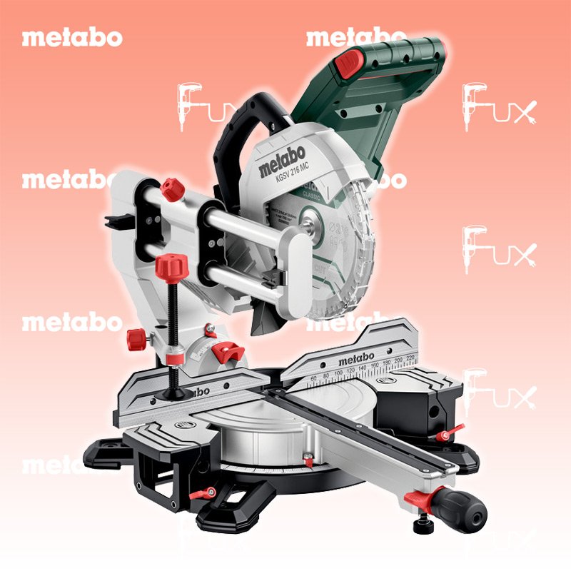 Zu "Gehrungs - und Kappsägen" von Metabo Metabo KGSV 216 MC Gehrungs- und Kappsäge Bestell- und Artikelnummer: 615216000 Vielseitige Kappsäge mit maximaler Ausstattung: variable Drehzahl, kompakte Zugfunktion, beidseitige Sägekopfneigung und vieles mehr Precision Cut Line (PCL): exakte Schatten-Schnittlinie ohne Nachjustieren durch clever platzierte LED Kompakt konstruierte Zugfunktion ohne Platzbedarf hinter der Säge Maximale Flexibilität beim Sägen durch beidseitig drehbaren Tisch und beidseitig neigbaren Sägekopf Variable Drehzahl für erweitertes Einsatzspektrum, z.B. zum Sägen von Alu-Profilen und Kunststoffen Effektive Spanabsaugung über integrierten Spänefangtrichter Sanftanlauf für lange Lebensdauer von Motor und Getriebe Schnelle und präzise Einstellung gängiger Winkel über Rastpunkte Ausziehbare Tischverbreiterungen, auch abnehmbar zum Unterlegen extrem langer Werkstücke Schnellspannzwinge zur sicheren Fixierung des Werkstücks von oben oder von vorne Tiefenanschlag zur einfachen Herstellung von Nuten Technische Daten Auflagefläche 345 x 730 mm Max. Schnittbreite 90° / 45° 305 / 215 mm Max. Schnitttiefe 90° / 45° 70 / 40 mm Schnittkapazität 90° / 90° 305 x 70 mm Schnittkapazität 45° / 45° 215 x 40 mm Drehtellereinstellung links/rechts 50 / 50 ° Sägeblattneigung links/rechts 47 / 47 ° Sägeblatt 216 x 30 mm Nennaufnahmeleistung S1 100% 1200 W Nennaufnahmeleistung S6 20% 1500 W Leerlaufdrehzahl 2200 - 5300 /min Drehzahl bei Nennlast 4200 /min Schnittgeschwindigkeit 25 - 60 m/s Kabellänge 2 m Abmessungen 705 x 480 x 555 mm Gewicht 15.4 kg Standard-Ausrüstung Hartmetall-Sägeblatt (60 Zähne) Materialklemme Werkzeug für Sägeblattwechsel Kabelaufwicklung Spänefangsack 2 integrierte Tischverbreiterungen Ablänganschlag Zubehör Listenpreis CHF 339.00 Fuxpreis CHF 288.00 inkl. 8.1% MwSt, inkl vRG Frankolieferung Kein Grauimport! Produkt bestellen 1 Stück 2 Stück 3 Stück 4 Stück 5 Stück 6 Stück 7 Stück 8 Stück 9 Stück 10 Stück Alle Angaben ohne Gewähr und solange Vorrat reicht!Wiederverkäufer werden?Lehrlingsrabatt? Produkt als PDF AKTION 15%