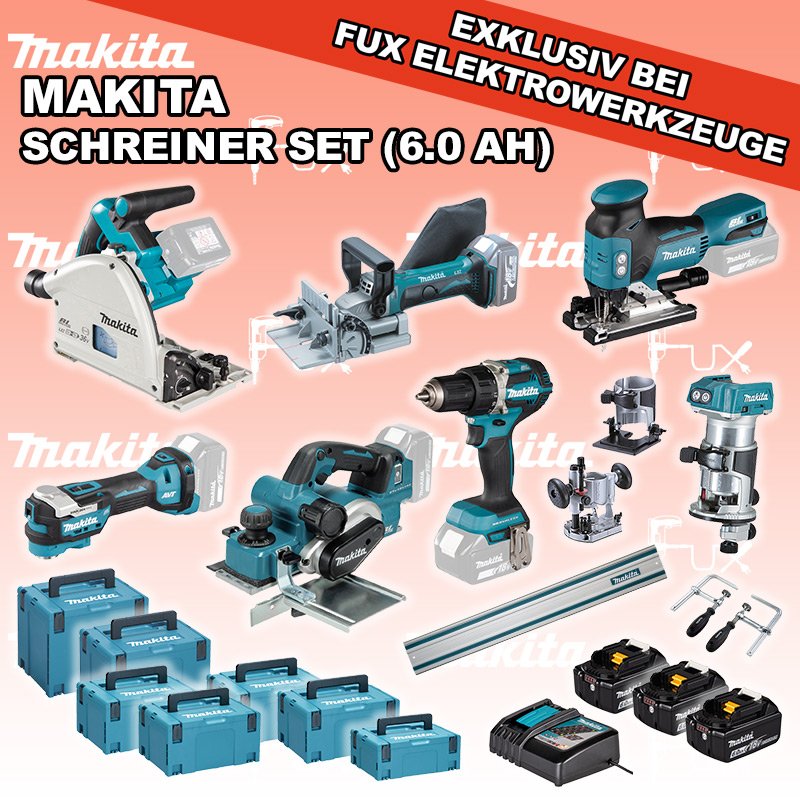 Heute auf dieses Produkt 31% Rabatt! Zu "Schreiner Set" von Makita Sparfux Aktionen FUX SPECIAL EXKLUSIV BEI FUX Makita Schreiner Set 7 (6.0 Ah) Bestell- und Artikelnummer: maSchreiner Set 7 (6.0 Ah) DSP601ZJU Eintauch-KreissägeAkkuspannung 2 x 18 V Sägeblatt (Ø) 165 mm Schnitttiefe bei 90° 56 mm Gewicht (EPTA) 5.1 kg Infos DTM52Z Multifunktions WerkzeugAkkuspannung 18 V Schwingungen 10000 - 20000 min-1 Werkzeugaufnahme Starlock Max System Gewicht inkl. Akku 2.0 kg Infos DJV18ZJ Akku-StichsägeAkkuspannung 18 V Hubzahl 800 - 3500/ min Schnittleistung Holz 135 mm / Stahl 10 mm Gewicht 2.5 kgInfos DRT50ZJX11 Akku-Einhandfräse / Kantenfräse Akkuspannung 18 V Leerlaufdrehzahl 10000 - 30000 min-1 Tiefeneinstellung bis 40 mm Gewicht 2.0 kgInfos DDF484ZJ Akku-BohrschrauberAkkuspannung 18 V Drehzahlen 0-500 / 0-2000 U/min Drehmoment hart / weich 54 / 30 Nm Gewicht 1.5 kgInfos DKP181ZJ Akku-Einhand-HobelAkkuspannung 18 V Hobelbreite 82 mm Spanabnahme stufenlos 0 - 3 mm Gewicht inkl. Akku 3.6 kgInfos DPJ180ZJ Akku-Universal-NutfräseAkkuspannung 18 V Leerlaufdrehzahl 6500 min-1 Fräserdurchmesser 100 mm Gewicht inkl. Akku 3.3 kgInfos 3 x BL 1860 B ( Li-Ion Akku )18 V 6.0 Ah ( Li-Ion Akku ) Infos DC 18 RC Schnell-Ladegerätfür Akkus 14.4 - 18 Volt ( Li-Ion Akkus )Infos Führungsschiene L = 140 cmgeeignet für SP6000 Handkreissäge mit passenden Adapter Auch für weitere Handkreissägen und Stichsägen geeignet mit passendem Adapter. ( 194579-2 )Infos 194385-5 Schraubzwingen für Führungsschienen2 Schraubzwingen für FührungsschienenInfos MAKPAC Gr. 3Produktabmessung (L x B x H) 377 x 277 x 176 mm Infos Einsatz für DTM52 Einsatz für DTM52 Makpac Koffer Typ C (821551-8) Infos Standard-Ausrüstung In diesem Set enthalten: DSP601ZJU Eintauch-Kreissäge DTM52Z Multifunktions Werkzeug DJV18ZJ Akku-Stichsäge DRT50ZJX11 Akku-Einhandfräse / Kantenfräse DDF484ZJ Akku-Bohrschrauber DKP181ZJ Akku-Einhand-Hobel DPJ180ZJ Akku-Universal-Nutfräse 3 x BL 1860 B ( Li-Ion Akku ) DC 18 RC Schnell-Ladegerät Führungsschiene L = 140 cm 194385-5 Schraubzwingen für Führungsschienen MAKPAC Gr. 3 Einsatz für DTM52 Geliefert im Koffer Zubehör Listenpreis CHF 3'343.00 Fuxpreis CHF 2'293.00 inkl. 8.1% MwSt, inkl vRG Versand CHF 20.00 Kein Grauimport! Produkt bestellen 1 Stück 2 Stück 3 Stück 4 Stück 5 Stück 6 Stück 7 Stück 8 Stück 9 Stück 10 Stück Option: Makita BL 1860 B ( Li-lon Akku ) für CHF 95.- statt CHF 124.-Infos Alle Angaben ohne Gewähr und solange Vorrat reicht!Wiederverkäufer werden? Produkt als PDF NEUHEITAKTION 31%