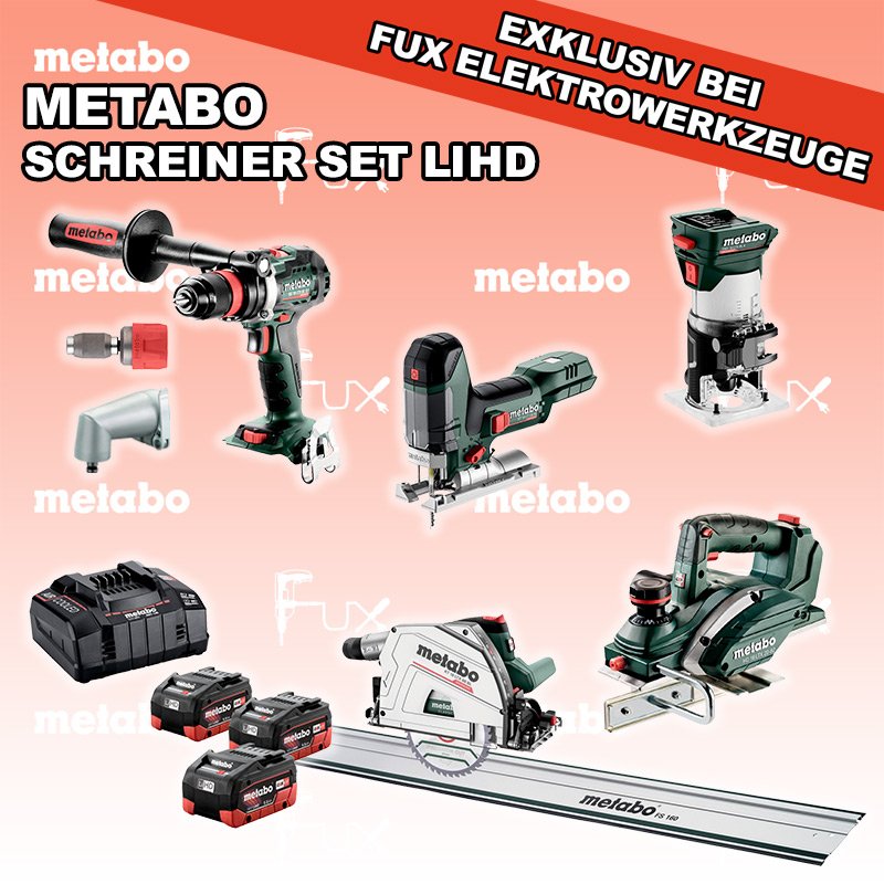 Heute auf dieses Produkt 40% Rabatt! Zu "Schreiner Set" von Metabo FULL Service: 36 Monate zum Nulltarif für Sie! Weitere Infos zum FULL Service Dieses Produkt ist CAS kompatibel! Weitere Infos zu CAS Sparfux Aktionen FUX SPECIAL EXKLUSIV BEI FUX Metabo Schreiner Set 4 LiHD Bestell- und Artikelnummer: Schreiner Set 4 LiHD ST 18 LT 130 BL Akku-StichsägeAkkuspannung 18 V Hubzahl 1000-3.500 /min Gewicht ohne Akkupack 1.5 kgInfos BS 18 LTX BL Q I Akku-BohrschrauberAkkuspannung 18 V Drehzahl 0-550 / 0-2000 U/min Drehmoment hart / weich 130 / 65 Nm Gewicht (mit Akkupack) 2.3 kgInfos FMV 18 LTX BL 8 Akku Kantenfräse Akkuspannung 18 V Leerlaufdrehzahl 4.800 - 29.000 /min Spannbohrung der Spannzange 6 / 8 mmInfos KT 18 LTX 66 BL Akku TauchkreissägeAkkuspannung 18 V Schnitt-Tiefe bei 90° 0-66 mm Sägeblatt 165 mm Gewicht 5.3 kgInfos HO 18 LTX 20-82 Akku-Einhand-HobelAkkuspannung 18 V Hobelbreite 82 mm Spanabnahme einstellbar 0-2 mm Gewicht 3.5 KgInfos FS 160 FührungsschieneGesamtlänge 1600 mmInfos 3 x 18 V, 5.5 Ah, LiHD Akkupack18 V 5.5 Ah ( LiHD Akkus ) Infos ASC 145, 12 - 36 V "Air Cooled" LadegerätZum Aufladen aller Li-Power Schiebesitz-Akkupacks (12 V - 36 V). Ladestrom 8.0 AInfos Schnellwechselbithalter »Quick«Schnellwechselbithalter »Quick« Geeignet für alle Metabo "Quick" Maschinen Bits mit 1/4 "Außensechskantantrieb Infos Schnellwechselwinkeladapter »Quick«Metabo "Quick" Maschinen mit Spannzange Ø 43 mm Magnetischer Bithalter mit 1/4 "(6,35 mm) SechskantschaftInfos Registriere die in diesem Set vorhandenen Metabo Maschinen auf metabo.ch, und ergattere dir bis zu 5 Gratis Akkus!Zusätzlich offerieren wir zu diesem Set einen Gratis Akku! Standard-Ausrüstung In diesem Set enthalten: ST 18 LT 130 BL Akku-Stichsäge BS 18 LTX BL Q I Akku-Bohrschrauber FMV 18 LTX BL 8 Akku Kantenfräse KT 18 LTX 66 BL Akku Tauchkreissäge HO 18 LTX 20-82 Akku-Einhand-Hobel FS 160 Führungsschiene 3 x 18 V, 5.5 Ah, LiHD Akkupack ASC 145, 12 - 36 V "Air Cooled" Ladegerät Schnellwechselbithalter »Quick« Schnellwechselwinkeladapter »Quick« Zubehör Verbrauchsmaterial Listenpreis CHF 2'521.50 Fuxpreis CHF 1'513.00 inkl. 8.1% MwSt, inkl vRG Versand CHF 40.00 Kein Grauimport! Produkt bestellen 1 Stück 2 Stück 3 Stück 4 Stück 5 Stück 6 Stück 7 Stück 8 Stück 9 Stück 10 Stück Alle Angaben ohne Gewähr und solange Vorrat reicht!Wiederverkäufer werden? Produkt als PDFVideo LiHD 1Video LiHD 2 AKTION 40%