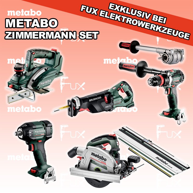 Heute auf dieses Produkt 27% Rabatt! Zu "Zimmermann Set" von Metabo FULL Service: 36 Monate zum Nulltarif für Sie! Weitere Infos zum FULL Service Dieses Produkt ist CAS kompatibel! Weitere Infos zu CAS Sparfux Aktionen FUX SPECIAL EXKLUSIV BEI FUX Metabo Zimmermann SET 2 SOLO Bestell- und Artikelnummer: Zimmermann SET 2 SOLO BS 18 LTX BL Q I Akku-BohrschrauberAkkuspannung 18 V Drehzahl 0-550 / 0-2000 U/min Drehmoment hart / weich 130 / 65 Nm Gewicht (mit Akkupack) 2.3 kgInfos SSW 18 LTX 550 BL Akku-SchlagschrauberAkkuspannung 18 V Anziehdrehmoment 550 Nm Werkzeugaufnahme 1/2" Gewicht ohne Akkupack 1,4 kgInfos SSEP 18 LTX BL MVT Akku-SäbelsägeAkkuspannung 18 V Hubzahl bei Leerlauf 0 - 3.000 /min Gewicht (mit Akkupack) 4.6 kgInfos HO 18 LTX 20-82 Akku-Einhand-HobelAkkuspannung 18 V Hobelbreite 82 mm Spanabnahme einstellbar 0-2 mm Gewicht 3.5 KgInfos KS 18 LTX 66 BL Akku HandkreissägeAkkuspannung 18 V Schnitt-Tiefe bei 90° 0-66 mm Sägeblatt 165 mm Gewicht 4.5 kgInfos Drehmomentvorsatz Power X3Drehmomentvorsatz ermöglicht dreifache Leistungssteigerung der Maschine (Drehmoment) für härteste AnwendungenInfos Kappschiene KFS 44Gesamtlänge 834 mm Schnittlänge 440 mmInfos Registriere die in diesem Set vorhandenen Metabo Maschinen auf metabo.ch, und ergattere dir bis zu 5 Gratis Akkus!Zusätzlich offerieren wir zu diesem Set einen Gratis Akku!OHNE AKKUS UND LADEGERÄT Standard-Ausrüstung In diesem Set enthalten: BS 18 LTX BL Q I Akku-Bohrschrauber SSW 18 LTX 550 BL Akku-Schlagschrauber SSEP 18 LTX BL MVT Akku-Säbelsäge HO 18 LTX 20-82 Akku-Einhand-Hobel KS 18 LTX 66 BL Akku Handkreissäge Drehmomentvorsatz Power X3 Kappschiene KFS 44 Listenpreis CHF 2'148.50 Fuxpreis CHF 1'553.00 inkl. 8.1% MwSt, inkl vRG Versand CHF 25.00 Kein Grauimport! Produkt bestellen 1 Stück 2 Stück 3 Stück 4 Stück 5 Stück 6 Stück 7 Stück 8 Stück 9 Stück 10 Stück Alle Angaben ohne Gewähr und solange Vorrat reicht!Wiederverkäufer werden? Produkt als PDF NEUHEITAKTION 27%