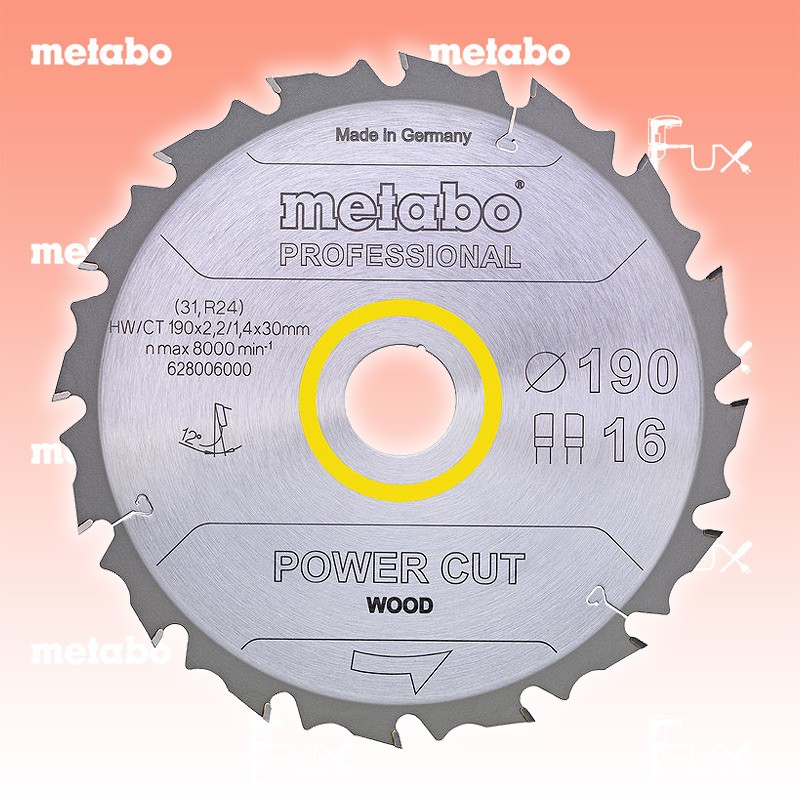 Zu "Kreissägeblätter »power cut« wood" von Metabo Metabo Kreissägeblatt 190 mm professional Bestell- und Artikelnummer: 628004000 Für grobe und mittelfeine Zuschnitte bei zügigem Vorschub und geringem Leistungsbedarf Gute Schnittergebnisse bei Längsschnitten in Vollholz Zum Teil einsetzbar für Bauholz mit Nägeln und Betonresten Besonders hohe Standzeit durch beste Hartmetallqualität und feingeschliffene Zähne Präzise, geräuscharme und vibrationsminimierte Schnitte durch gelaserte Dehnschlitze (und teilweise Laserornamente), sowie gelaserte Stammblätter aus hochwertigstem Stahl Zum Kreissägeblatt-Finder Technische Daten Durchmesser x Schnittbreite x Bohrung 190 x 2.6 x 20 mm Material HW/CT Zähnezahl 14 Zahnform WZ Stammblattdicke 1.8 mm Spanwinkel 25° geeignet für Ks 1266 S / Ks 1468 S Verpackung Karton Standard-Ausrüstung Verkaufseinheit 1 Stk. Listenpreis CHF 49.00 Fuxpreis CHF 42.00 inkl. 8.1% MwSt, inkl vRG Versand CHF 15.00 Kein Grauimport! Produkt bestellen Verkaufseinheit 1 Stk. 1 Stück 2 Stück 3 Stück 4 Stück 5 Stück 6 Stück 7 Stück 8 Stück 9 Stück 10 Stück 11 Stück 12 Stück 13 Stück 14 Stück 15 Stück 16 Stück 17 Stück 18 Stück 19 Stück 20 Stück 21 Stück 22 Stück 23 Stück 24 Stück 25 Stück 26 Stück 27 Stück 28 Stück 29 Stück 30 Stück 31 Stück 32 Stück 33 Stück 34 Stück 35 Stück 36 Stück 37 Stück 38 Stück 39 Stück 40 Stück 41 Stück 42 Stück 43 Stück 44 Stück 45 Stück 46 Stück 47 Stück 48 Stück 49 Stück 50 Stück Alle Angaben ohne Gewähr und solange Vorrat reicht!Wiederverkäufer werden?Lehrlingsrabatt? Produkt als PDF AKTION 15%