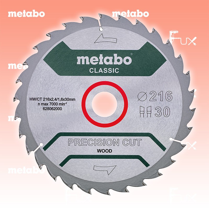 Zu "Kreissägeblätter »precision cut« wood " von Metabo Metabo Kreissägeblatt 216 mm classic Bestell- und Artikelnummer: 628062000 Sehr breites Einsatzspektrum in der Holzbearbeitung Für saubere Schnittergebnisse bei Längs- und Querschnitten in Weich- und Hartholz Geeignet für Voll- und Schichtholz, Spanplatten roh, beschichtet oder furniert, MDF, Verbundwerkstoffe Höhere Leistungskraft der Kreissäge notwendig Zum Kreissägeblatt-Finder Technische Daten Durchmesser x Schnittbreite x Bohrung 216 x 2.4 x 30 mm Material HW/CT Zähnezahl 30 Zahnform WZ Stammblattdicke 1.6 mm Spanwinkel 22° geeignet für TS 216 / TS 216 Floor Verpackung Karton Standard-Ausrüstung Verkaufseinheit 1 Stk. Listenpreis CHF 54.50 Fuxpreis CHF 46.00 inkl. 8.1% MwSt, inkl vRG Versand CHF 15.00 Kein Grauimport! Produkt bestellen Verkaufseinheit 1 Stk. 1 Stück 2 Stück 3 Stück 4 Stück 5 Stück 6 Stück 7 Stück 8 Stück 9 Stück 10 Stück 11 Stück 12 Stück 13 Stück 14 Stück 15 Stück 16 Stück 17 Stück 18 Stück 19 Stück 20 Stück 21 Stück 22 Stück 23 Stück 24 Stück 25 Stück 26 Stück 27 Stück 28 Stück 29 Stück 30 Stück 31 Stück 32 Stück 33 Stück 34 Stück 35 Stück 36 Stück 37 Stück 38 Stück 39 Stück 40 Stück 41 Stück 42 Stück 43 Stück 44 Stück 45 Stück 46 Stück 47 Stück 48 Stück 49 Stück 50 Stück Alle Angaben ohne Gewähr und solange Vorrat reicht!Wiederverkäufer werden?Lehrlingsrabatt? Produkt als PDF AKTION 15%