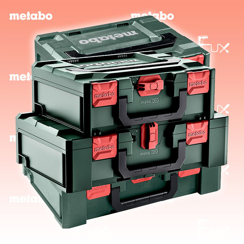 Das Ladenlokal bleibt vom 25. Dezember 2025 bis am 04. Januar 2026 geschlossen. Bestellungen und Lieferungen von Neugeräten werden trotz Ferienabwesenheit in gewohnter Fux-Manier entgegengenommen und ausgeliefert. Zu "Metabox mit Einlagen " von Metabo Metabo Metabox 145 Transportkoffer Bestell- und Artikelnummer: 626886000 Intelligentes Transport- und Aufbewahrungssystem für mobiles Arbeiten Extrem robust und bruchsicher durch Material und Formgebung für maximale Belastbarkeit Optimaler Schutz von Maschinen und Zubehör gegen Schmutz und Feuchtigkeit (IP43) Schnelles und einfaches Stapeln und Koppeln der Boxen in allen Systembreiten Eine Box im Stapel kann einfach geöffnet werden ohne diese zu entkoppeln Zwei zur Wahl: Komfortabler Frontgriff für körpernahes Tragen und extrabreiter Deckelgriff zum Tragen von mehreren Boxen im Stapel Zahlreiche passgenaue Einlagen (Zubehör) für individuelle Ordnung im Inneren der Box Cleveres Zubehör: Rollbrett und Trolley für maximale Mobilität sowie eine Adapterplatte zur Sicherung der Boxen im Fahrzeug metaBOX 145, geeignet für BS L / BS LT / SB L / SB LT, 18V geeignet für 3 Akkus geeignet für ASC 55 / ASC 145 / SC 30 Technische Daten Abmessungen 396 x 296 x 145 mm Koffervolumen: 11.2 l Max. Traglast Deckel 125 kg Gewicht 1.64 kg Material ABS Listenpreis CHF 38.00 Fuxpreis CHF 32.00 inkl. 8.1% MwSt, inkl vRG Versand CHF 15.00 Kein Grauimport! Produkt bestellen 1 Stück 2 Stück 3 Stück 4 Stück 5 Stück 6 Stück 7 Stück 8 Stück 9 Stück 10 Stück 11 Stück 12 Stück 13 Stück 14 Stück 15 Stück 16 Stück 17 Stück 18 Stück 19 Stück 20 Stück 21 Stück 22 Stück 23 Stück 24 Stück 25 Stück 26 Stück 27 Stück 28 Stück 29 Stück 30 Stück 31 Stück 32 Stück 33 Stück 34 Stück 35 Stück 36 Stück 37 Stück 38 Stück 39 Stück 40 Stück 41 Stück 42 Stück 43 Stück 44 Stück 45 Stück 46 Stück 47 Stück 48 Stück 49 Stück 50 Stück Alle Angaben ohne Gewähr und solange Vorrat reicht!Wiederverkäufer werden?Lehrlingsrabatt? Produkt als PDF AKTION 15%