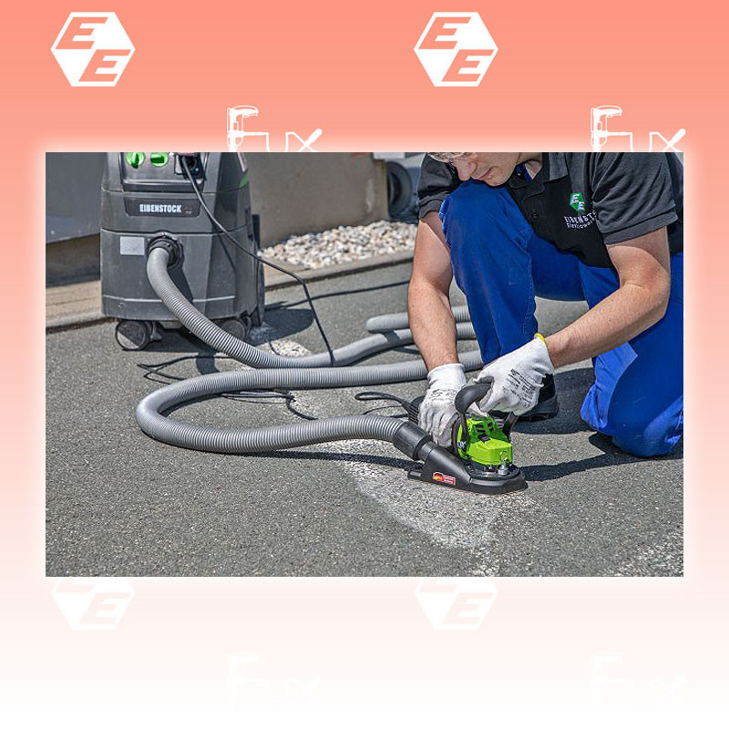- Präzisionshaube – Frästiefeneinstellung in 0,1 mm Stufen für exaktes Abtragen (bis max. 1,0 mm) – kein unbeabsichtigtes Einfräsen in das Grundmaterial