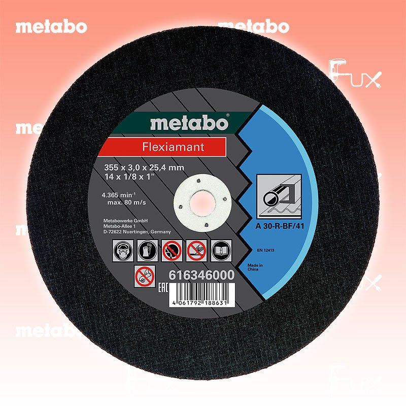 Zu "»Flexiamant Super« Stahl " von Metabo Metabo »Flexiamant Super« Stahl Trennscheibe Bestell- und Artikelnummer: 616346000 Zur Verwendung in der gesamten Stahlverarbeitung Gute Schnittleistung bei guter Standzeit in Stahl Ausgewogen in Schnittleistung und Standzeit Mittelharte Ausführung für leistungsstarke Maschinen (Maschinenbelastung > 3 KW) Arbeitshöchstgeschwindigkeit 80 m/s Technische Daten Qualitätsklasse A 30-R Scheibendurchmesser 355 mm Ausführung: gerade Maximale Geschwindigkeit 4365 / min Standard-Ausrüstung Verkaufseinheit 10 Stk. Listenpreis CHF 12.00 Fuxpreis CHF 10.20 inkl. 8.1% MwSt, inkl vRG Versand CHF 15.00 Kein Grauimport! Produkt bestellen Verkaufseinheit 10 Stk. 1 Stück 2 Stück 3 Stück 4 Stück 5 Stück 6 Stück 7 Stück 8 Stück 9 Stück 10 Stück 11 Stück 12 Stück 13 Stück 14 Stück 15 Stück 16 Stück 17 Stück 18 Stück 19 Stück 20 Stück 21 Stück 22 Stück 23 Stück 24 Stück 25 Stück 26 Stück 27 Stück 28 Stück 29 Stück 30 Stück 31 Stück 32 Stück 33 Stück 34 Stück 35 Stück 36 Stück 37 Stück 38 Stück 39 Stück 40 Stück 41 Stück 42 Stück 43 Stück 44 Stück 45 Stück 46 Stück 47 Stück 48 Stück 49 Stück 50 Stück Alle Angaben ohne Gewähr und solange Vorrat reicht!Wiederverkäufer werden?Lehrlingsrabatt? Produkt als PDF AKTION 15%