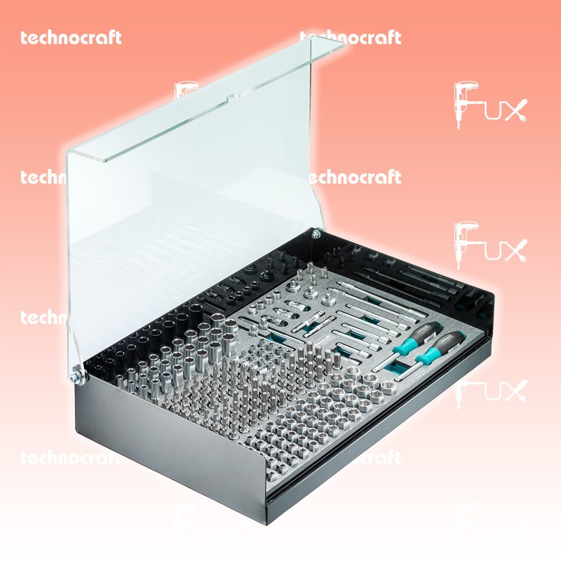 Die optimale Präsentation für den Laden. Hier sind alle Einzelteile der neuen Silverline Stecknusslinie sauber präsentiert. Der CNC gefräste Schaumstoff bietet jedem Teil seinen Platz und ist sauber beschriftet und die transparente Abdeckung verhindert ein verschmutzen der Einlage. Jede Stecknuss ist mit der Artikelnummer beschriftet und mit EAN ausgezeichnet, so dass man an der Kasse jedes Teil identifizieren und mit EAN Code einfach in die Auftragserfassung übernehmen kann.