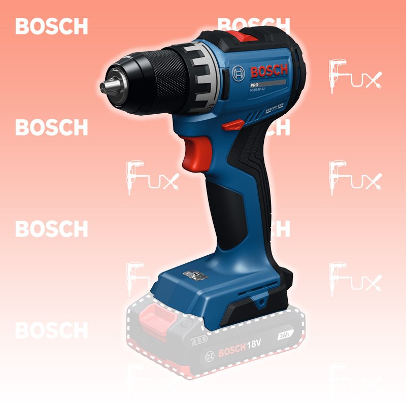 Zu "Akku Bohrschrauber 18 Volt" von Bosch Professional Bosch Professional GSR18V-52 Akku-Bohrschrauber Bestell- und Artikelnummer: 06019S0021 Effizienteres Schrauben und Bohren dank höherem weichen/harten Drehmoment von 25 Nm bzw. 52 Nm. Einfaches Arbeiten auf engstem Raum durch kompakte Bauweise mit einer außergewöhnlichen Kopflänge von nur 146 mm. Längere Werkzeugstandzeiten dank bürstenlosem Motor. Langlebig und robust mit Metallfutter für höchste Qualität beim Schrauben und Bohren Produkt-Highlights Der GSR18V-52 Professional macht das Schrauben und Bohren dank seines höheren weichen und harten Drehmoments von 25 Nm bzw. 52 Nm effizienter. Für dieses kompakte Werkzeug mit einer außergewöhnlichen Kopflänge von nur 146 mm sind enge, schwierige Bereiche kein Problem. Außerdem profitierst du dank des verschleißärmeren bürstenlosen Motors von einer längeren Lebensdauer. Dieser langlebige Bohrschrauber verfügt über ein robustes Metallfutter für präzises Schrauben und Bohren. Ausstattung und Anwendung Der GSR18V-52 Professional ist hauptsächlich für Tischler, Schrankinstallateure und Elektroinstallateure gedacht. OHNE AKKUS UND LADEGERÄT Technische Daten Akkuspannung 18 V Leerlaufdrehzahl 500 / 1900 min⁻¹ Drehmoment 70 / 52 / 25 Nm Kopflänge GSR 146 mm Max-Bohren (Holz / Metall / Mauerwerk) 35 / 13 / 13 mm Bohrfutterspannbereich, min./max. 1.5 / 13 mm Abmessung (L x B x H) 146 x 56 x 204 mm Gewicht exkl. Akku 0.9 kg Standard-Ausrüstung L-BOXX 136 Geliefert im Koffer Zubehör Verbrauchsmaterial Listenpreis CHF 178.00 Fuxpreis CHF 151.00 inklusive 8.1% MwSt Versand CHF 15.00 Kein Grauimport! Produkt bestellen Das Produkt ist momentan nicht lieferbar!Bestätigen sie, dass sie damit einverstanden sind! 1 Stück 2 Stück 3 Stück 4 Stück 5 Stück 6 Stück 7 Stück 8 Stück 9 Stück 10 Stück Alle Angaben ohne Gewähr und solange Vorrat reicht! Produkt als PDF NEUHEITAKTION 15%