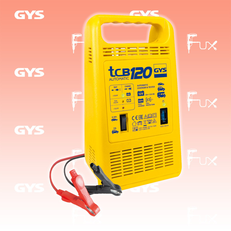 Zu "Batterie Lade- und Startgeräte " von Gys Gys TCB-120 Batterie-Ladegerät Bestell- und Artikelnummer: T023284 100% Ladungen aller Bleibatterientypen: GEL, AGM, VRLA, Flüssig Für PW, Lieferwagen etc. Automatische Ladekontrolle mit Erhaltungsladung ergibt 100% Ladung Ladezustand-Anzeige mittels Kontrollleuchten Verpolungsschutz mit Warnton bei Falschverpolung Isolierte Batterieklemmen mit Kabeln im Gerätefach verstaut Technische Daten Batteriespannung 12 Volt Kapazität 20 - 120 Ah Leistung kVA 0.15 kW Ladestrom Stufe 1 3.5 A Ladestrom Stufe 2 7.0 A Ladestrom max. 10.5 A Netzspannung 230 Volt Gerätesicherung 15 A Abmessung BxTxH 165 x 110 x 290 mm Gewicht 2.9 kg EAN-Code 3154020023284 Zubehör Verbrauchsmaterial Listenpreis CHF 119.00 Fuxpreis CHF 101.00 inkl. 8.1% MwSt Versand CHF 15.00 Kein Grauimport! Produkt bestellen 1 Stück 2 Stück 3 Stück 4 Stück 5 Stück 6 Stück 7 Stück 8 Stück 9 Stück 10 Stück Alle Angaben ohne Gewähr und solange Vorrat reicht!Lehrlingsrabatt? Produkt als PDF AKTION 15%